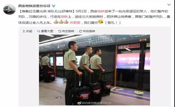 战争年代,有解放军入上海而露宿街头不扰民;今有兵哥,搭乘高铁不抢道、不抢座!让我们为新时代的军人点赞!