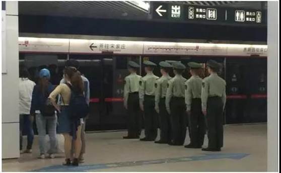 在入站时,他们不与旅客抢电梯,全部走楼梯。