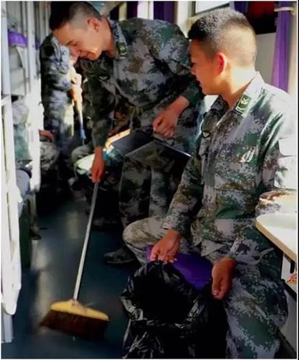 看到这个“豆腐块”被子我们并不陌生,才结束军训的师弟师妹更不陌生,看似简单,却要经过无数次的练习才能达到这种效果,这就是军人平时的生活作风!什么~~他们居然把火车变成军营!