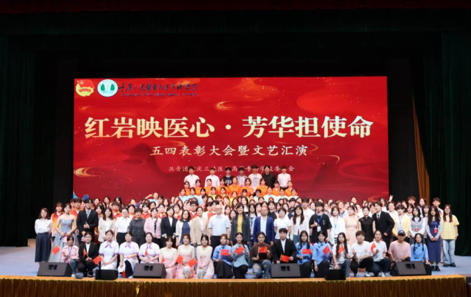 百年五四薪火相传,新时代的青春号角已然吹响。为纪念五四运动106周年,传承“爱国、进步、民主、科学”的五四精神,厚植红岩革命文化底蕴,展现新时代医务工作者的使命担当,同时表彰2024年度在团学工作中表现优异的先进集体和个人,4月29日下午,我校“红岩映医心·芳华担使命”五四表彰大会暨文艺汇演在学术中心剧场成功举行。学校党委委员、副校长邓雪松,学工副部长李春光,团委书记熊书,各学院党总支书记,部分职能部门教师代表,各学院分团委书记及怀揣热忱的团员青年代表等800余人齐聚一堂,共同见证这场青春盛会。