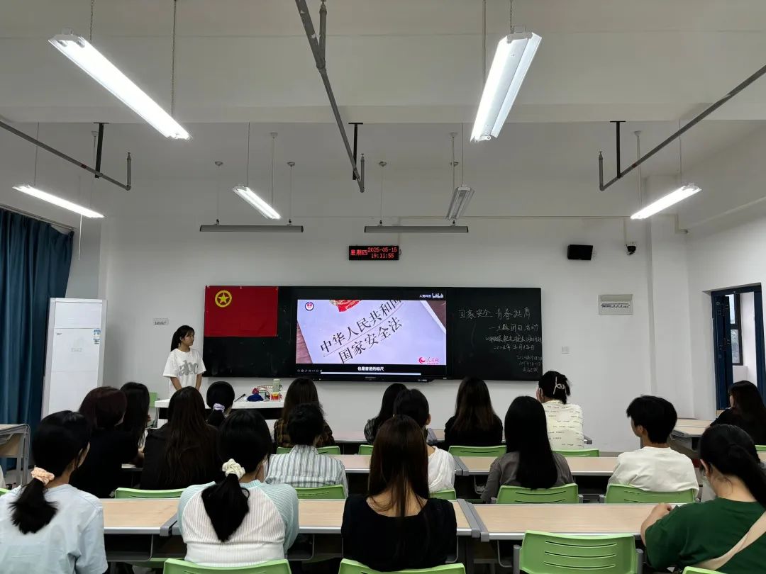 维护国家安全,青年责无旁贷。各班团支部书记组织班级同学集中学习《中华人民共和国国家安全法》《反间谍法》等国家安全相关法律法规及政策,结合实际案例进行了深入浅出的讲解,帮助同学们深刻理解国家安全的内涵,并鼓励同学们积极向身边人宣传国家安全理念,以实际行动践行青年使命担当。