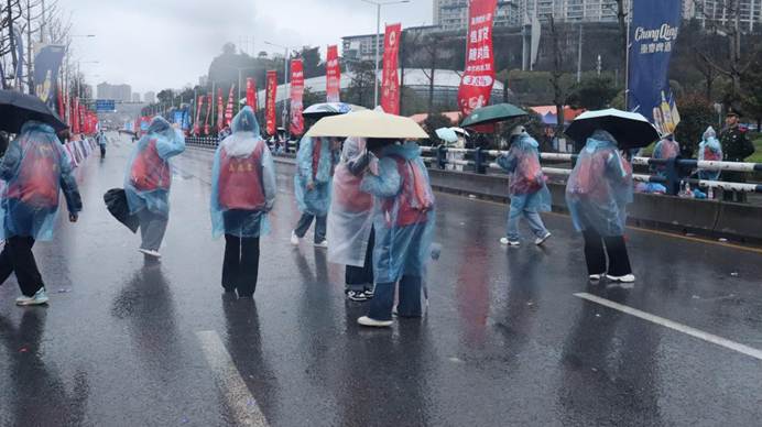 “党旗所指,就是行动所向。”接到赛事志愿服务任务后,校团委迅速响应,将服务大局、服务社会作为青年思想引领的实践课堂。在选拔与培训过程中,引导学生深刻理解:作为一名医学生、一名未来的医务工作者,听党话、跟党走是首要的政治品质。比赛当日凌晨5时,全体志愿者无一人迟到、无一人掉队,准时集结完毕,分批次奔赴各自岗位。那一刻,晨曦中的马甲红,正是青春向党、挺膺担当的最亮底色。