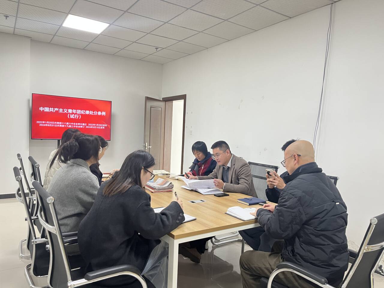 3月9日上午,校团委在学生活动中心303会议室举办《中国共产主义青年团纪律处分条例(试行)》(以下简称《条例》)专题学习会。会议由校团委书记熊书主持,邀请医学技术学院分团委副书记易世林老师担任领学人,围绕《条例》进行深入解读,并结合在团市委挂职期间的工作经历分享心得体会,各学院分团委书记、校团委全体工作人员参加学习。