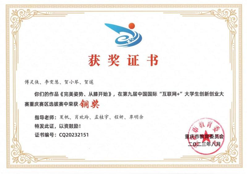 ⑥“互联网+”大学生创新创业大赛重庆市级铜奖;
