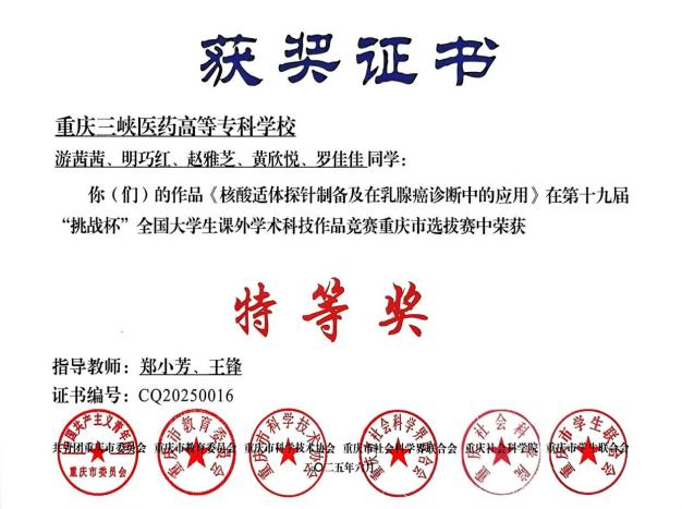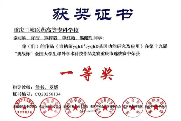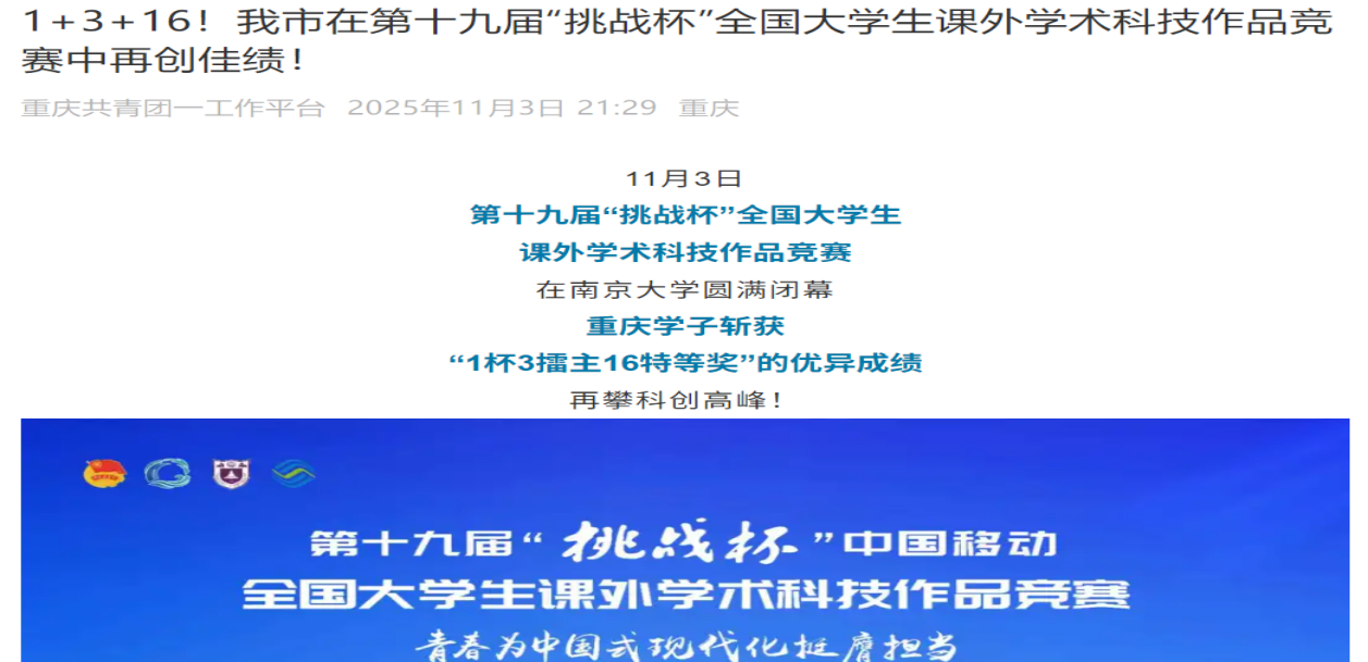 此外,学校在重庆市选拔赛决赛中,从2.1万余件作品中脱颖而出,荣获特等奖2项、一等奖4项、二等奖6项、三等奖3项。这是近十年来学校共青团在该赛事中取得的最好成绩。