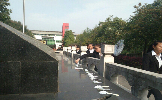 2016年3月26日早上7:50,三峡医专的120名志愿者在学校二号门处集合签到完毕。一个个精神饱满、充满期待的志愿者们都在默默等着公交车的到来。清明节扫墓活动都在有条无紊的进行着,青年志愿者们的那种积极,无时无刻都体现出她们的那种爱国的精神。满怀期待地她们终于到达了万州烈士墓陵园,胸前佩戴好了洁白,崇高的小白花她们迈着整齐有序的步伐,一个个昂首挺胸向着烈士墓前进。在这悲痛的气氛中,她们深知自己肩负的重任,她们踏着革命先辈们用鲜血铺成的道路,深深地哀痛革命先辈们,意识到身为祖国的一份的责任。