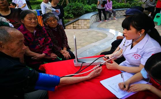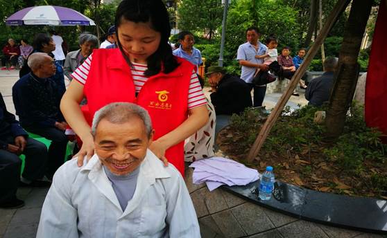 为社区居义诊服务的过程中,随时都能听到志愿者和老人的笑声与居民的感谢声,看到老人们满脸开心的笑容和享受的神情,大家感到一切的付出都是值得的。记得那些老人们看到百安志愿者和我校志愿者时都非常的激动,红色的志愿者服装和洁白的白大褂交相辉映,一切显得如此的温馨安逸。如霞的红,温暖着每一个善良的人,如雪的白,纯净了每一颗明亮的心灵。亲切的手法,换来的是老人们灿烂的笑容,仿佛在这里,我们的志愿者都是爱与希望的接力棒。