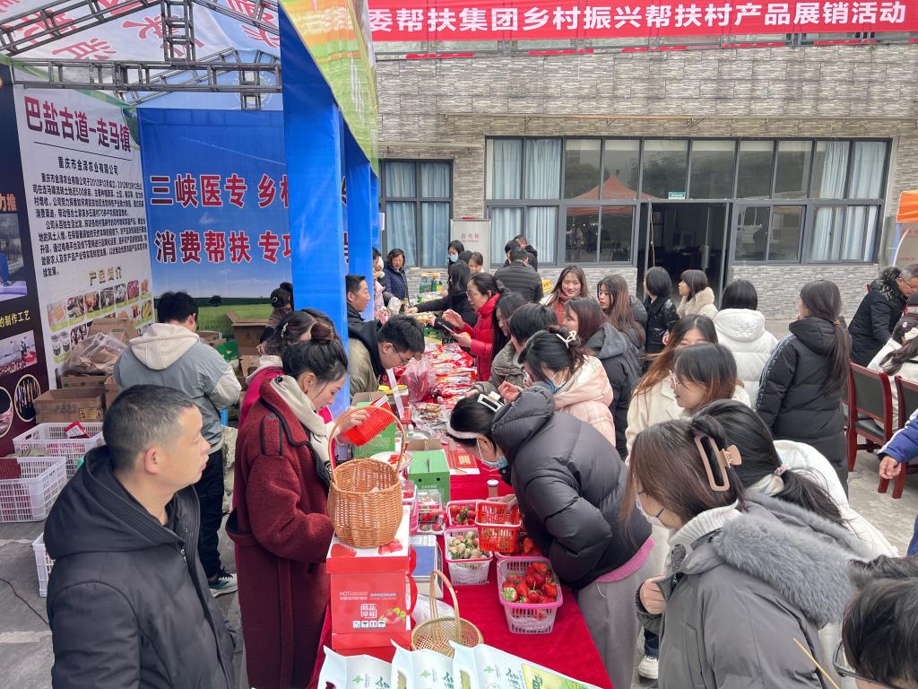 为做深做实消费帮扶工作,助力乡村振兴。12月18至19日,学校在学生活动中心负二楼车库门前举办“市教委帮扶集团乡村振兴帮扶村产品展销活动”,本次活动采取线上抖音直播和线下直销结合的方式进行,产品主要源于市教委帮扶集团和学校对口帮扶的万州区走马镇、恒合乡,巫溪县天元乡,产品类别主要有腊货、土鸡蛋、土鸡、大米、水果、灵芝孢子粉等产品。
