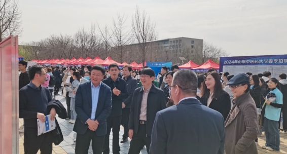 与会领导来到2024年山东中医药大学春季招聘会暨“宏志助航计划招聘会”现场开展观摩。
