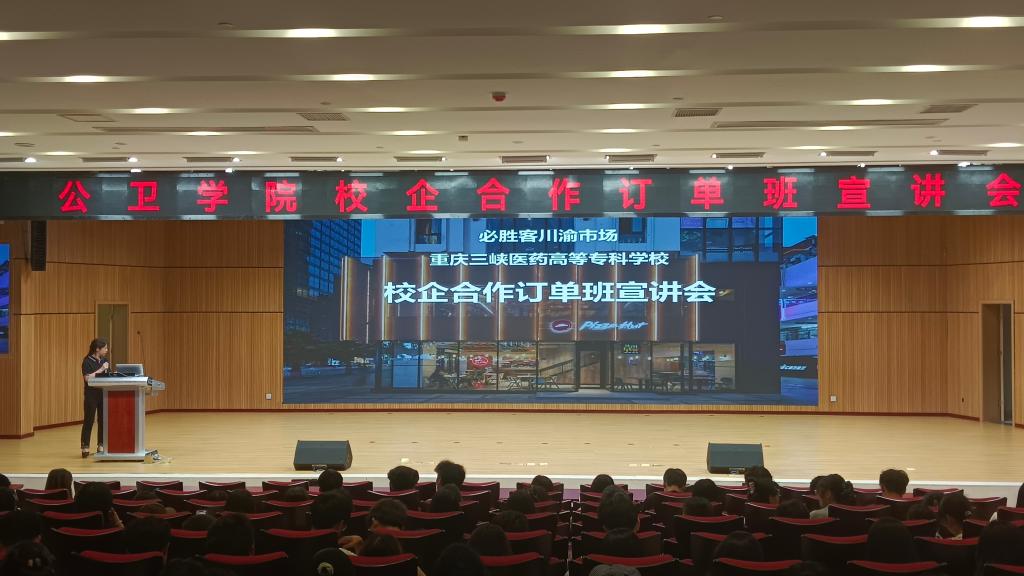 百胜餐饮重庆分公司人事总经理陈天相表示,企业将通过订单班模式系统培养专业人才,让更多优秀学子在企业发展中实现人生价值。中能企业副总裁韩文屏特别表扬了学校2026届实习生的吃苦耐劳精神和专业素养,期待通过订单班合作进一步深化校企协同,共同培养大健康产业急需的高素质人才。上海经纬职道数字科技有限公司招聘总监周航提出,将与企业共同开发课程,将企业培训体系融入教学全过程,推动课程建设与产业需求精准对接。