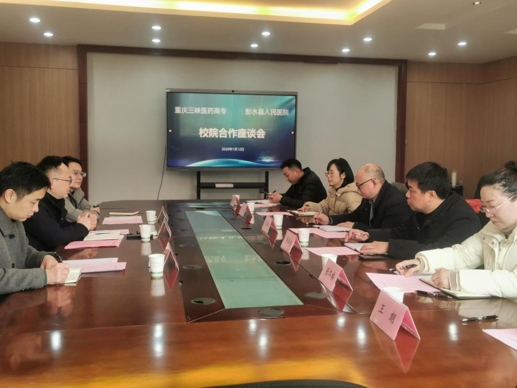 1月12日,彭水苗族土家族自治县人民医院党委书记周兴福、副院长刘锐带领科教科负责人及相关人员一行来校,开展深化校院合作交流座谈。学校党委委员、副校长邓雪松出席会议,合作交流中心、教务处、学生处、发展规划处、临床医学院等部门负责人及相关人员共同参会。