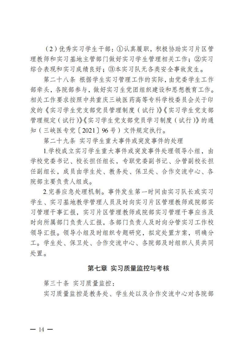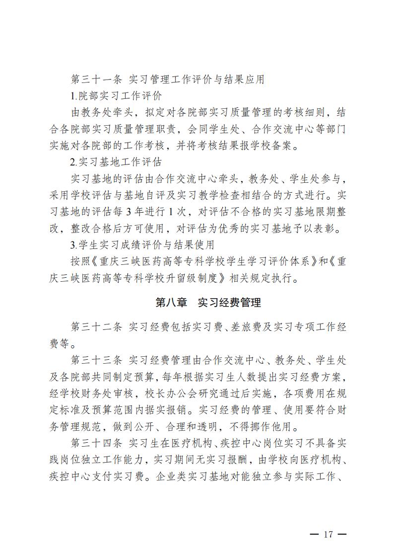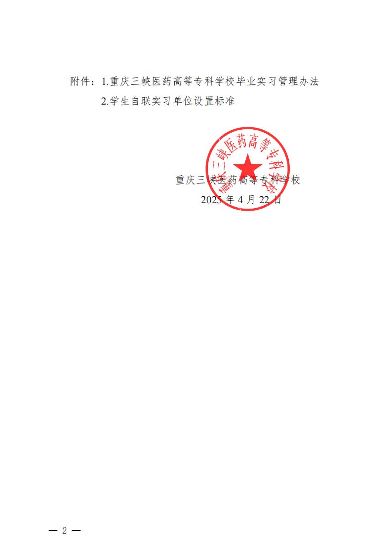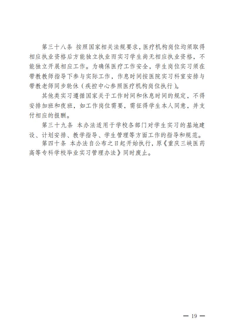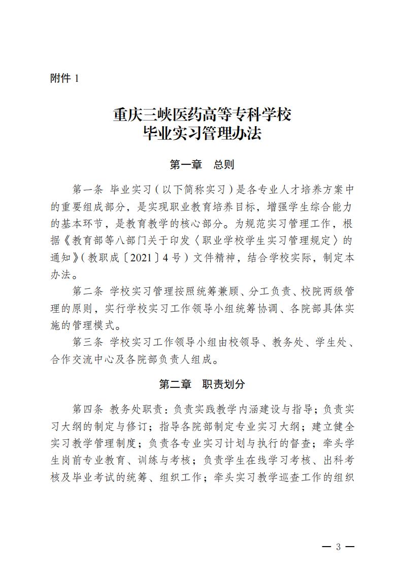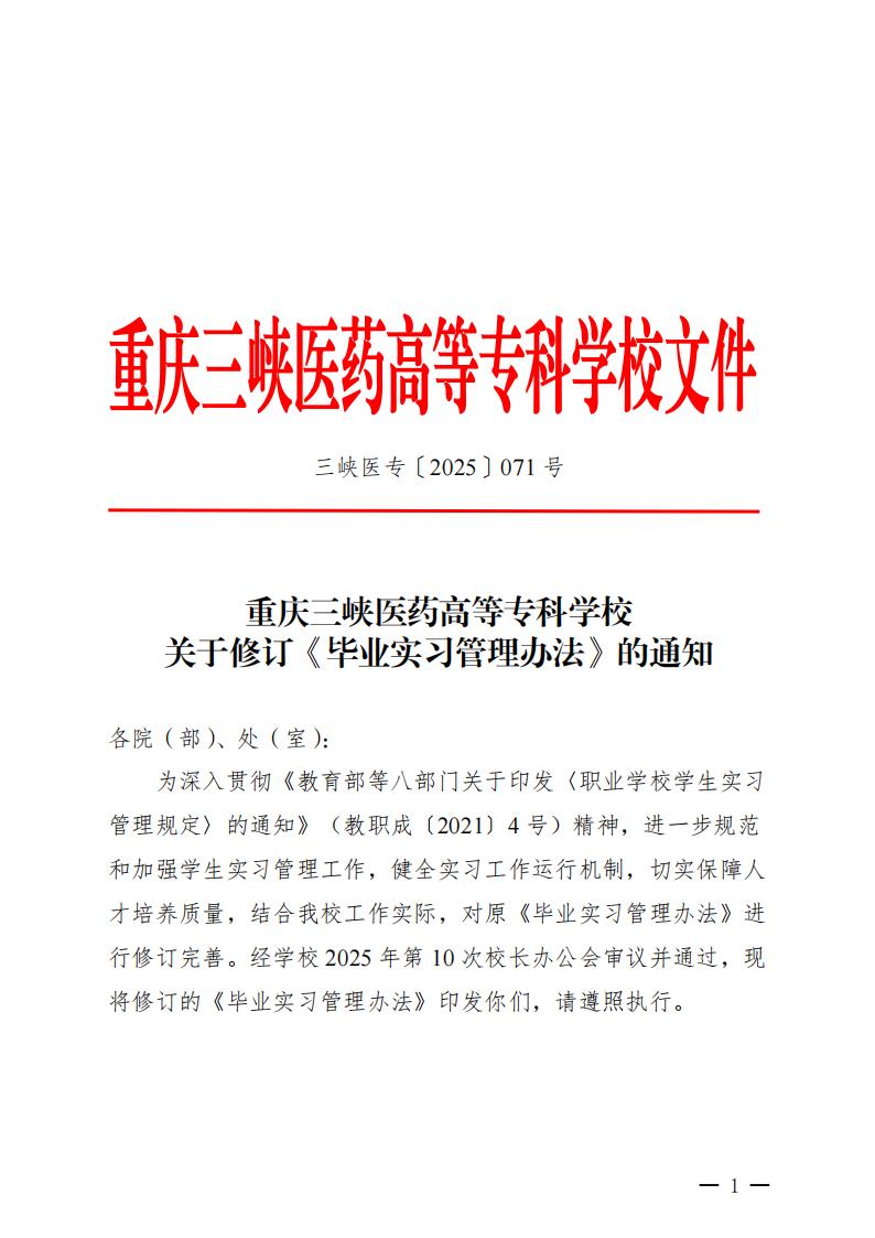 重庆三峡医药高等专科学校关于修订《毕业实习管理办法》的通知