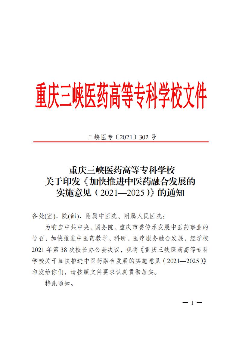 关于印发《加快推进中医药融合发展的实施意见(2021—2025)》的通知