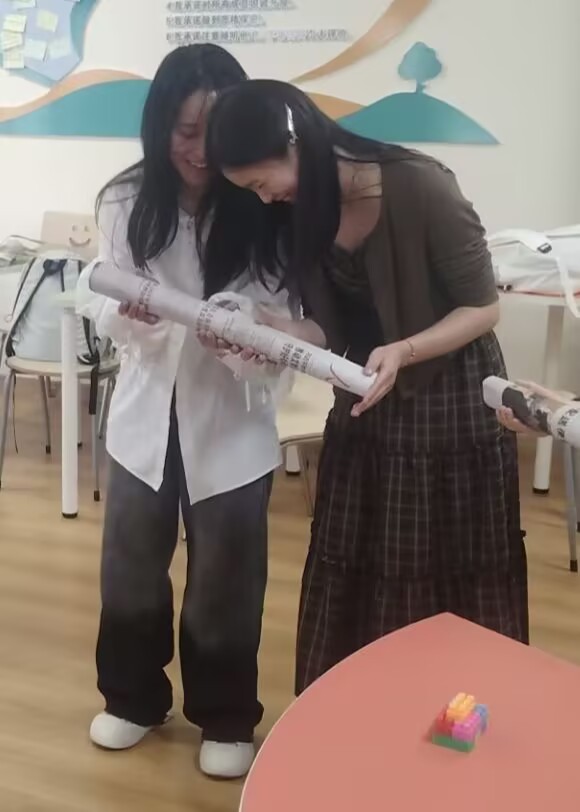 在“纸筒传乒乓球”环节中,同学们齐心协力,紧密配合。他们不断尝试,调整角度和纸筒孔径大小,力求让乒乓球顺利穿过纸筒。大家互相鼓励,共同攻克难关,现场气氛紧张而又热烈。这个过程不仅考验了同学们的耐心和细心,更增强了他们的团队协作能力。“社团问题收集”环节则引发了同学们对社团建设的深入思考。大家积极发言,纷纷提出自己对社团发展的建议和看法。有的关注活动组织的细节,有的强调成员间的沟通与协作,通过此环节,同学们深刻体会到了团队合作的力量,明白了只有集思广益,才能让社团不断进步。在“拼接积木”环节中,在老师的分工下,有的同学遮上眼睛,有的同学协作指挥路线,还有的同学记住老师发的图纸,用肢体语言的方式传递信息给一个只能用右手,一个只能用左手的合作拼搭积木的同学。整个活动不仅促进了团队成员间的沟通交流,还增强了团队凝聚力。