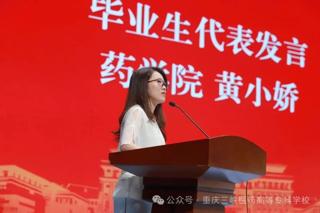 “从三峡医专走出的每一步,都离不开母校的滋养。”学校2008届药学专业校友、九州通医药集团地区公司总经理黄小娇作为校友代表,结合自身从基层销售员成长为中国500强龙头企业管理者的经历,向新生分享成长感悟。她鼓励学弟学妹们早定目标、多做实践,在实训中明晰职业方向;扎实学好专业知识,以过硬本领筑牢职业根基;主动沟通交流,锻炼共情与表达能力;心怀家国情怀,将个人理想融入医药健康事业发展,做无愧于时代的“医专人”。