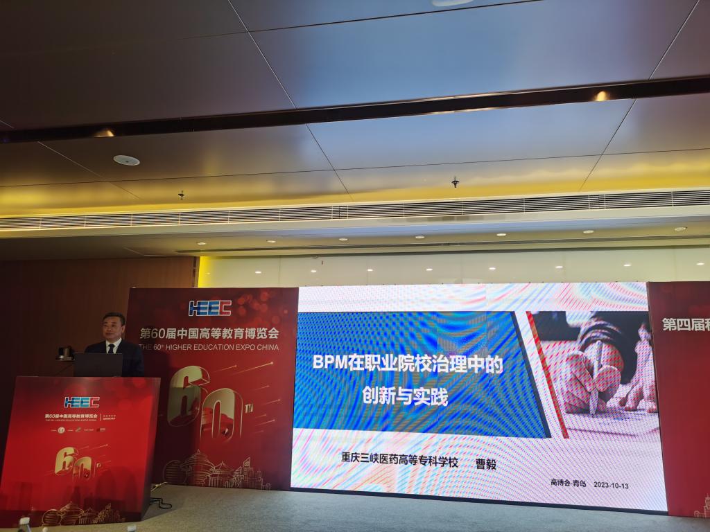 2023年10月12日-14日,第60届中国高等教育博览会在青岛红岛国际会议展览中心举行。学校党委书记曹毅应邀出席第四届科技赋能教育系列报告活动,并作《BPM在职业院校治理中的创新与实践》主旨报告。