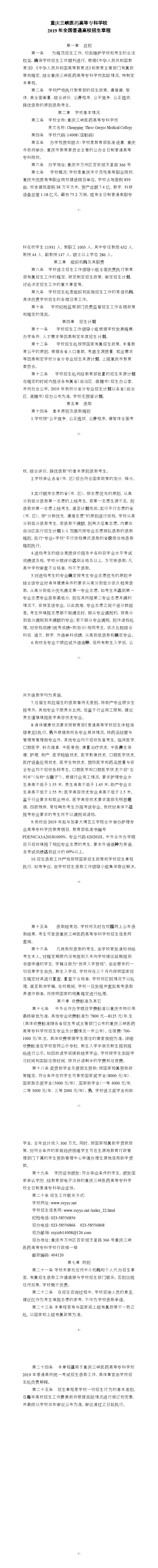 重庆三峡医药高等专科学校2019年全国普通高校招生章程