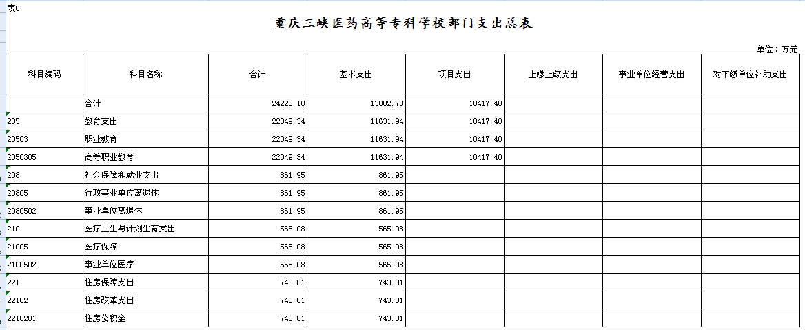 重庆三峡医药高等专科学校2016年财政拨款支出预算表