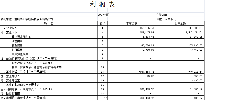 2017年利润表