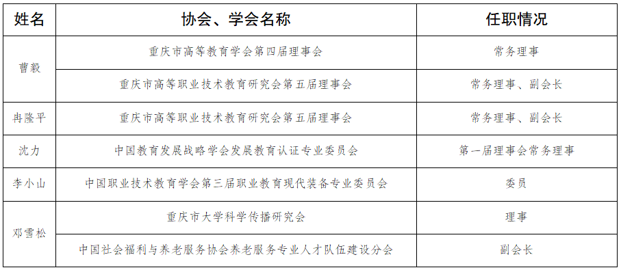 重庆三峡医药高等专科学校领导社会兼职情况统计