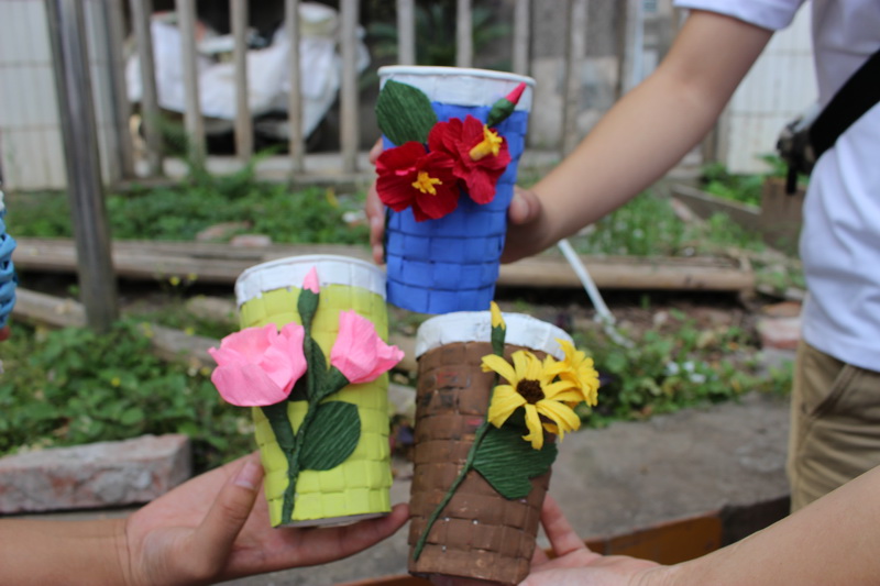 “十指”指的是同学们勤劳、灵巧的双手;“连心”是指同学们创造出精美的手工艺品,将其作为礼物送给医务人员及患者,为构建和谐医患关系做出自己的努力。今年5月底,团委便整合社联和社团资源启动了此项工作,不仅号召社联学生干部回收有价值且干净的废旧物品,还集结了社联及社团中有手工特长的同学在一起“变废为宝”,将废旧回收品变成漂亮的工艺品。