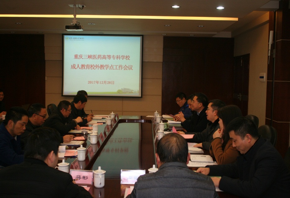 12月28日上午,我校召开成人教学校外教学点工作会议,学校校长陈地龙出席会议。来自涪陵、长寿、奉节、綦江、渝西卫生学校等5个教学点的领导、老师以及职业培训部、招生就业处、教务处、行政办公室等主要负责人共27人参加会议。会议由副校长沈力主持。