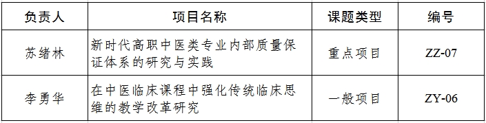 我校获批的中医药职业教育“大学习深调研细落实”研究课题名单