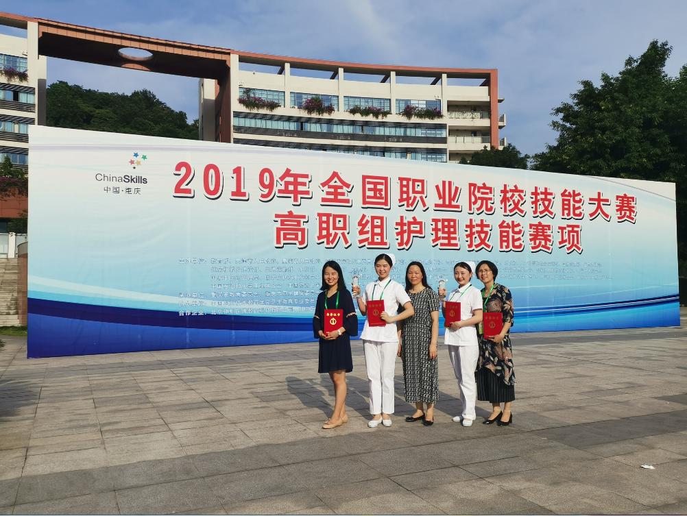 6月2~4日,由教育部主办的2019年全国职业院校技能大赛护理赛项(高职组)在重庆医药高等专科学校举行,来自全国31个省、自治区、直辖市99所护理专业高职院校的143位选手同场竞技。经过激烈角逐,学校护理学院学生代青青,鄢双双凭借扎实的基本功和全面的综合素质,双双斩获大赛一等奖,实现历史性突破,护理学院教师张晶、谭严被评为“优秀指导老师”。