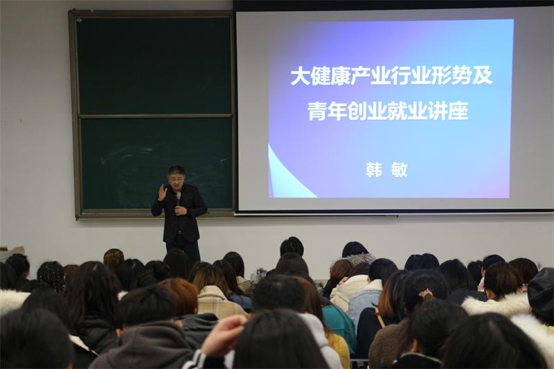 下午,韩敏董事长为中医学院学生作了主题为“大健康产业行业形势及青年创业就业”的专场讲座。他指出,学生要有一颗感恩的心,要像爱妈妈一样爱自己的学校;学生要有一颗学习的心,要拥有深厚的中医基础理论来建构知识体系;要有一颗进取的心,要善于发现机会并不惧失败。