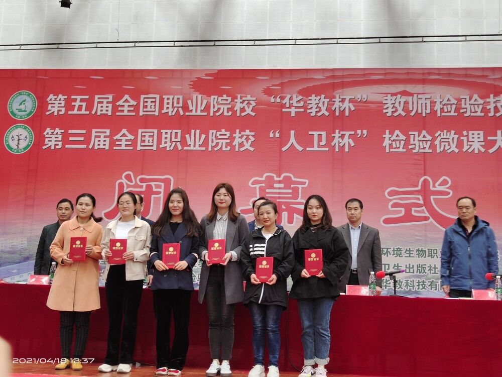 我校医学检验技术专业及医学生物技术专业共5名教师参加检验技能竞赛,5个团队参加检验微课大赛。医学检验技术专业教师凭借稳定的技术水平,在比赛中沉着应对,经过激烈比拼,最终刘婷婷、陈艾思教师以个人排名第一的优异成绩获得微生物检验、血常规检验一等奖,黄敏教师获形态学检验二等奖,何雪梅、王有为教师分别获得生化检验、免疫学检验三等奖;检验微课大赛上,我校获二等奖4项,三等奖1项。在闭幕式颁奖典礼上,主办方点名表扬我校师生在检验技能竞赛中积极参赛、不断突破取得的优异成绩,肯定了我校教师教学能力及教学成果。