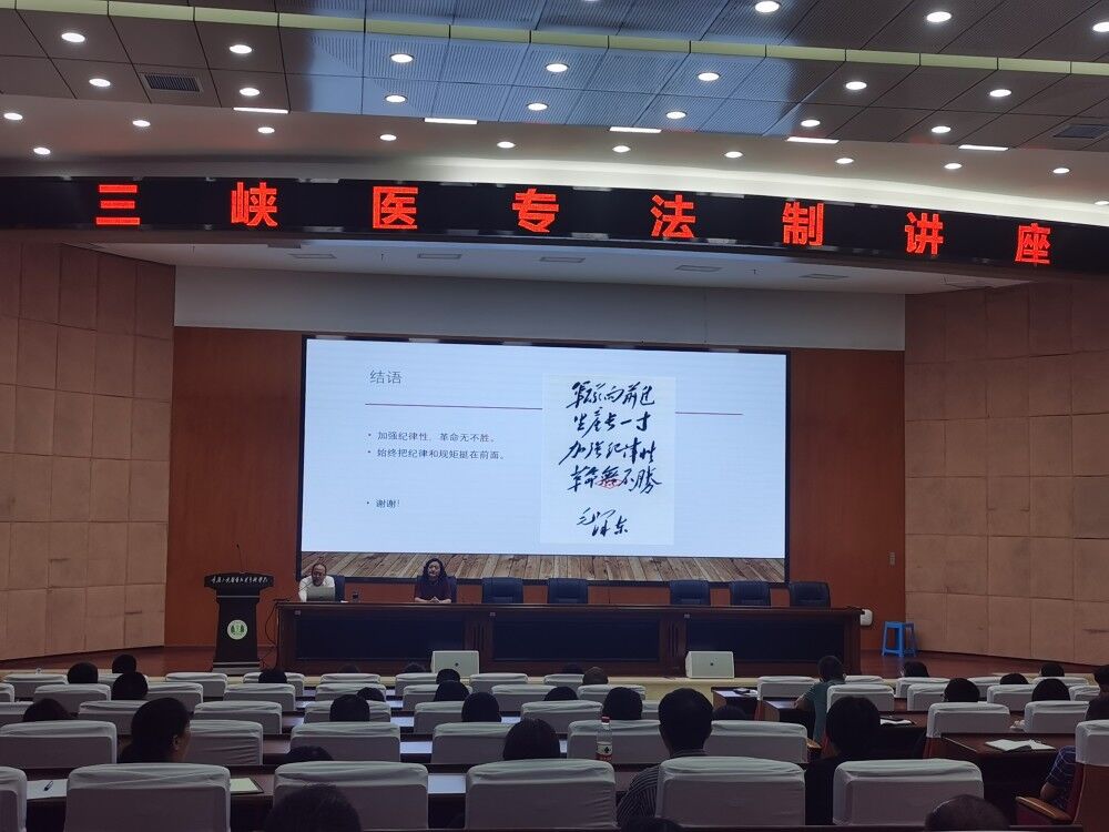 为进一步加强教职工师德师风建设,强化遵纪守法意识,5月12日下午,学校在学术活动中心国际会议厅举办法制讲座。讲座特邀重庆渝万律师事务所法律顾问朱占亮律师主讲,学校中层、科级干部,各党总支及支部的纪检委员,3所附属医院分管领导以及教师代表共计100余人参加,人事处副处长朱晓兰主持讲座。