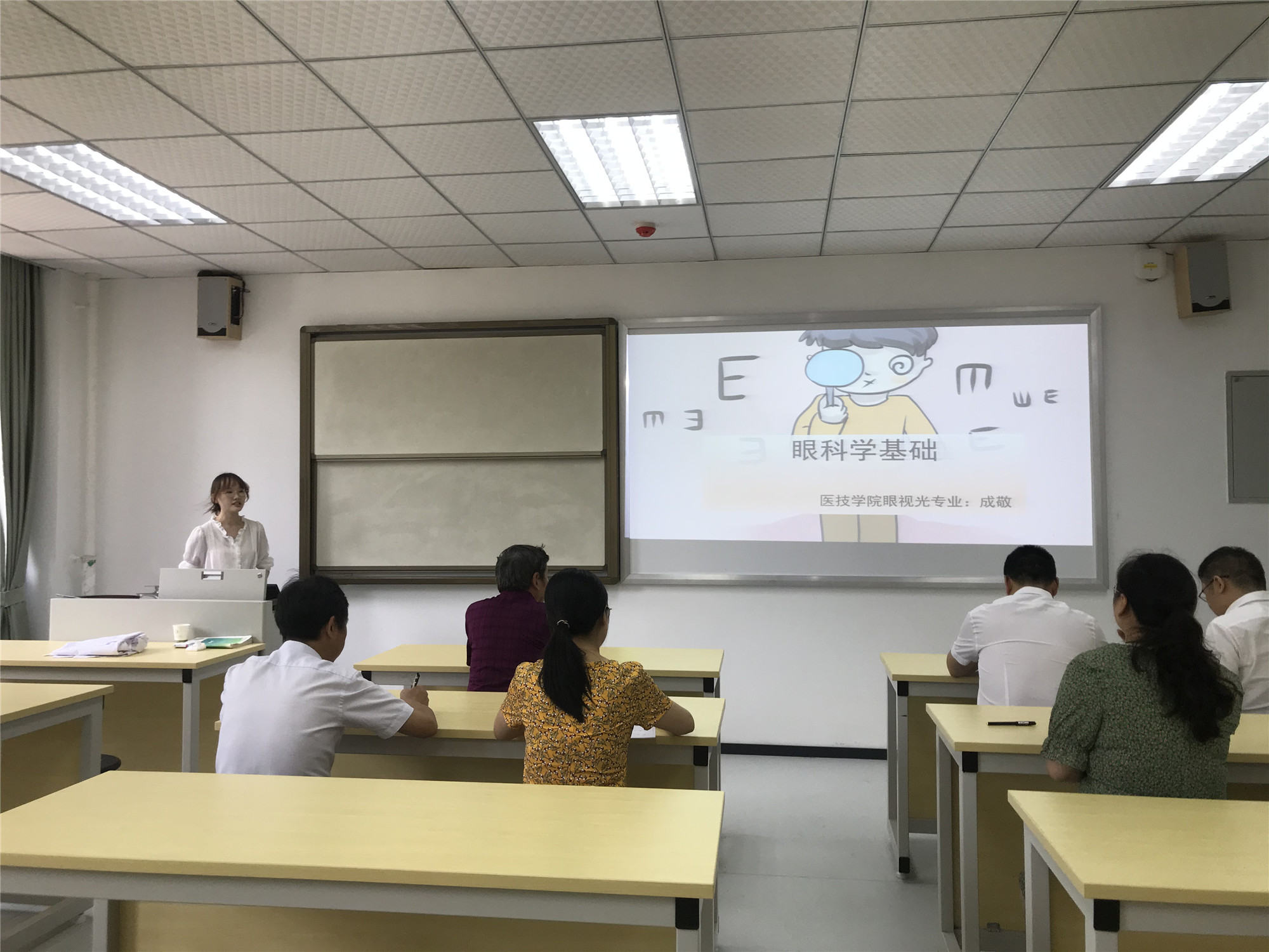 新进专职教师成敬、学校返聘教师杨力宇、外聘兼职教师梅涛和王晓彬4位老师分别就下学期新开教学课程《眼科学基础》《眼镜光学技术》《眼视光特检技术》的相关章节进行了试讲。4位老师备课充分,教学环节完整,课件制作精美、语言清晰流畅,试讲结果整体较好。