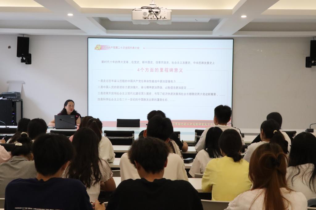为持续推进学习贯彻习近平新时代中国特色社会主义思想主题教育,加强学生党员、入党积极分子、学生干部的政治培养和思想武装,发挥好引领带动作用,近期,医学技术学院党总支书记罗玉琳在新区B6-415,围绕学习贯彻习近平新时代中国特色社会主义思想主题教育核心思想,以“学习贯彻党的二十大精神”为题,为学生党员、入党积极分子、学生干部代表带来了一场内容丰富,思想深刻的专题党课。