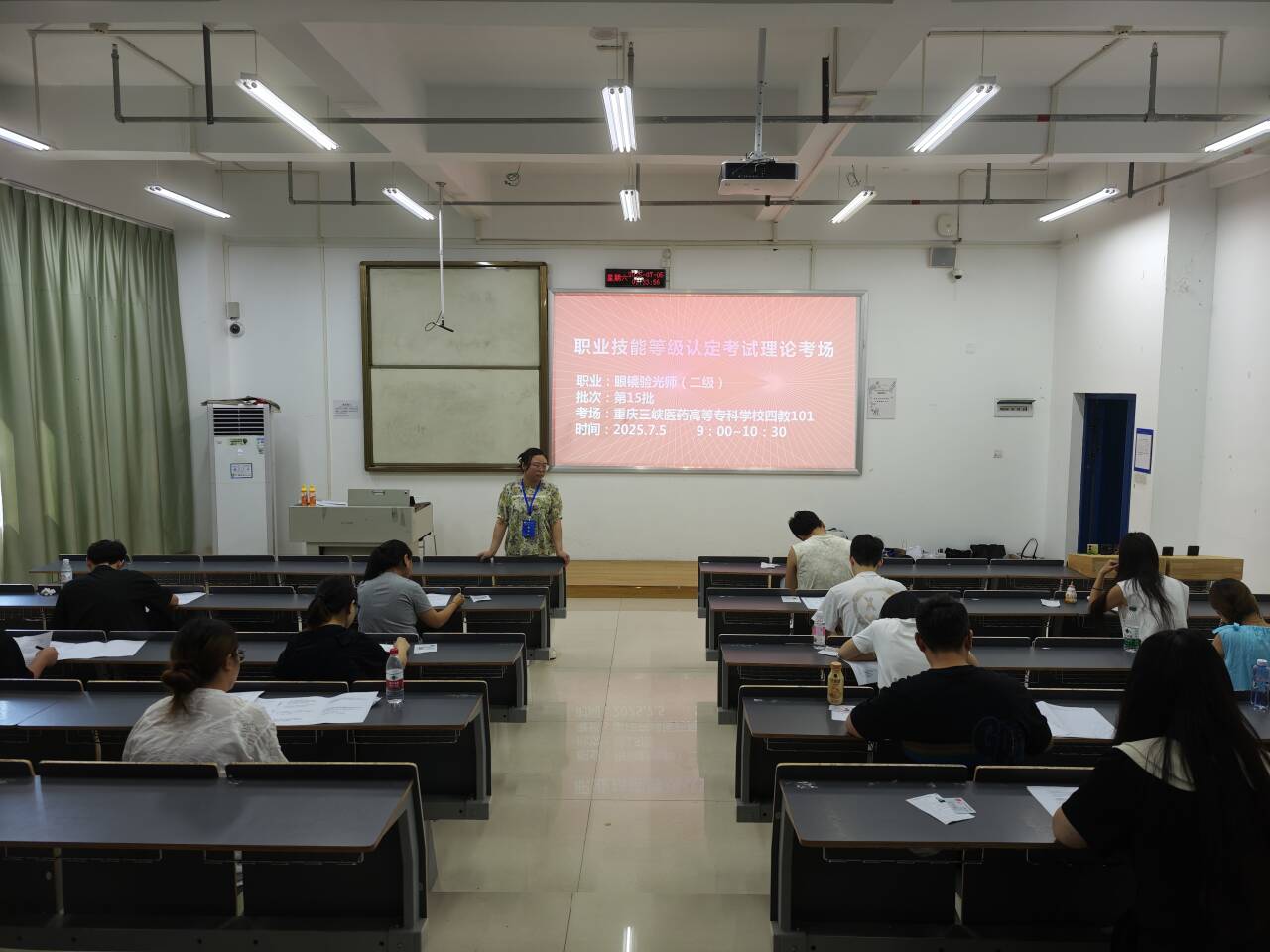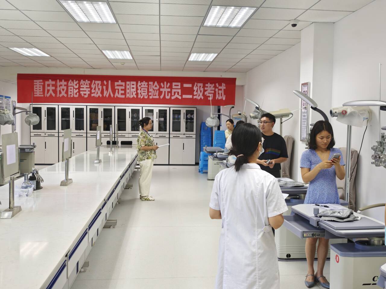 7月5-6日,经重庆职业鉴定中心备案批准的眼镜验光师一二级、眼镜定配工二级等多个职业工种的职业技能鉴定工作在我校开展,来自川渝地区的30余名考生参加了本次鉴定,医学技术学院2名教师担任考评员。