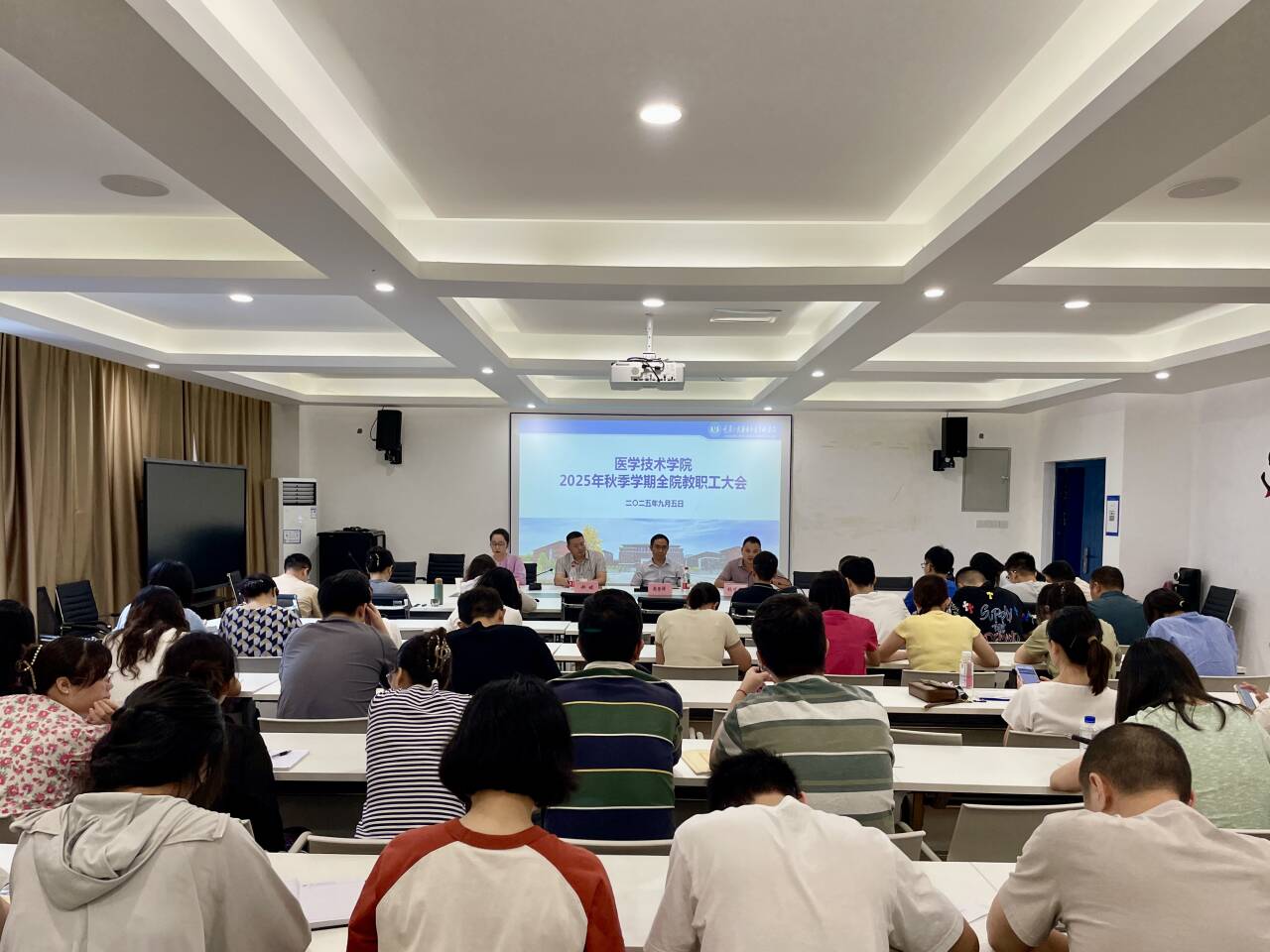9月5日上午,医学技术学院召开了2025年秋季学期首次全体教职工大会。学院院长郝坡主持会议,学院党政领导班子成员以及全体教职工参加了会议。