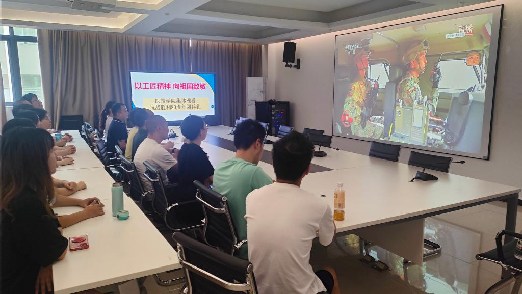 为铭记历史、缅怀先烈、弘扬爱国主义精神,医学技术学院于9月3日组织学院教师在B6-415集中观看中国人民抗日战争暨世界反法西斯战争胜利80周年阅兵式直播。