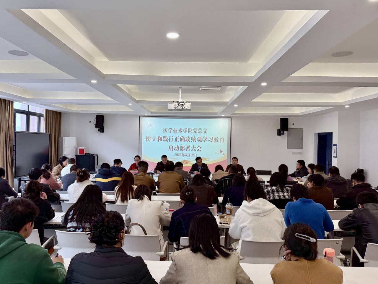 为深入贯彻落实党中央、市委及学校党委关于树立和践行正确政绩观学习教育的工作部署,切实正确政绩观融入学院发展各方面、全过程,312下午,医学技术学院党总支在B6-415会议室召开树立和践行正确政绩观学习教育启动部署会议,学院党总支书记赖登祥、院长郝坡、全院教职工参会,会议由学院专职副书记张远理主持。