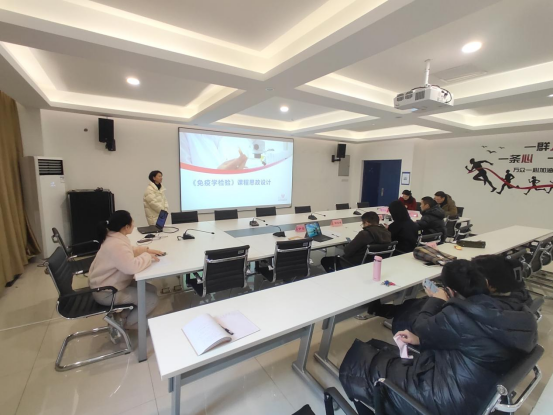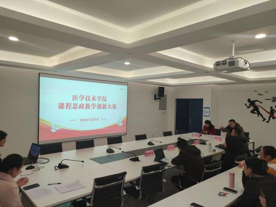 郝坡做总结讲话。他表示,此次比赛,参赛团队中涵盖了优秀的青年教师、经验丰富的骨干教师,向我们展示了扎实的教学基本功,也彰显了医学技术学院在课程思政教学改革洪流中积极进取的优良风貌。 他希望,全体教师要贯彻把“立德树人”作为教育根本任务的核心教育理念,以构建全员、全程、全课程育人格局的形式将专业课程与思想政治指导同向同行,互相协同,落实育德育人职责。