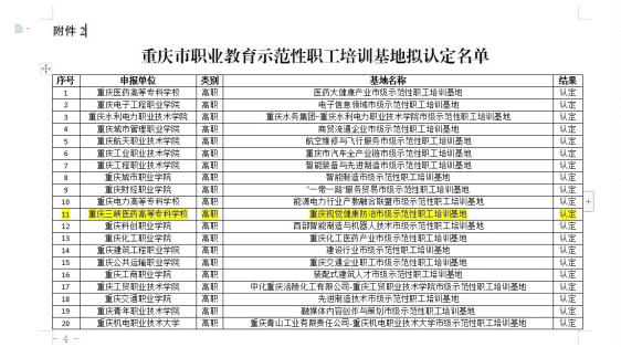 2023年6月,对2023年重庆市职业教育示范性职工培训基地项目立项进行结果公示,眼视光技术专业成功入选,名单如下: