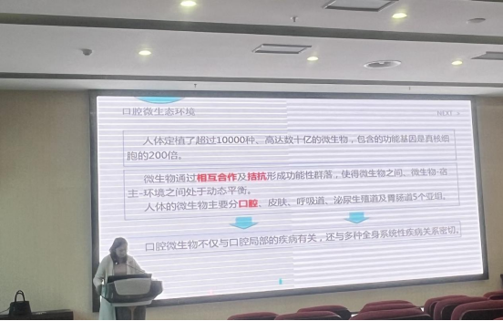闫一梵老师分别从口腔微生态环境、细菌与口腔疾病的关系、常用抑菌方法、细菌素抑菌机制研究四个方面介绍了血链球菌细菌素在口腔微生态环境中的抑菌机制研究方法和过程。闫老师首先运用大量图表讲解口腔微生态环境,并对现有研究内容进行分析、整合、提炼和概括。她表示,口腔微生物群落的部位、年龄差别显著。其次,围绕大量临床病例对口腔微生物与健康的关系进行深入阐述,提出口腔微生物不仅与口腔局部的疾病有关,还与全身系统性疾病关系密切。随后逐一列举了三种临床常用的抑菌方法,包括物理灭菌、药物抑菌和微生态制剂。最后,利用对比实验就细菌素的抑菌机制提出了自己的见解和思考。