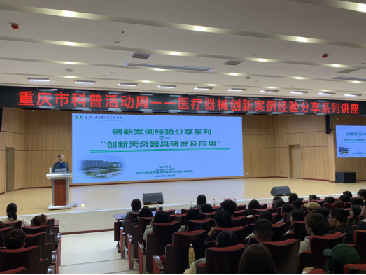 为深入贯彻落实党的二十大精神和习近平总书记关于科学普及工作的重要指示精神,广泛营造讲科学、爱科学、学科学、用科学的良好氛围。4月9日在科技处、医学技术学院全体师生、志愿者的协作下,由学校主办,医学技术学院联合附属医院承办的 “医疗器械创新案例经验分享”系列讲座在第四教学楼学术报告厅举行,全校200余名师生参加。