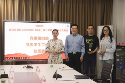 在表彰环节,学院党总支书记赖登祥为在2025届就业工作中表现突出的辅导员颁发荣誉证书和奖品学院副院长蒲永莉为就业工作先进的教研室颁发奖杯副校长张建忠为对口帮扶成效显著的职能部门颁发奖杯,充分肯定了各部门在协同推进就业中发挥的积极作用。