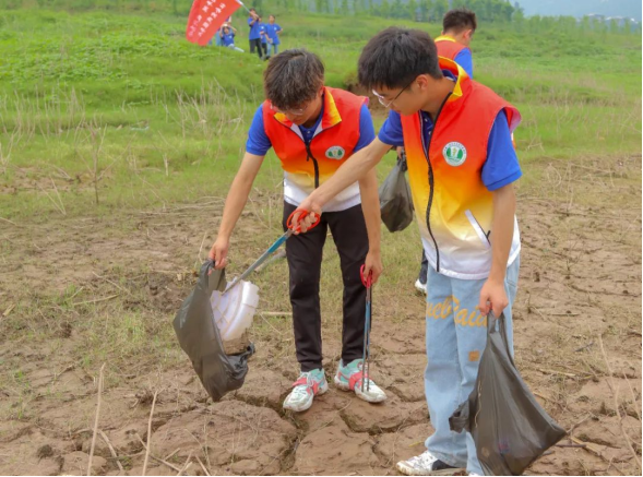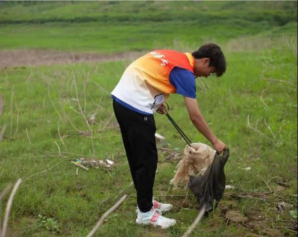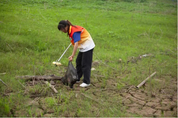 大家分工明确、协同合作,忙碌的身影形成了一条亮丽的风景线。虽天气闷热,但志愿者们仍兴致高昂、坚定初心,在保证自身安全的前提下,积极投入到对江岸垃圾“地毯式”清理工作中,用实际行动阐释了作为一名青年大学生的责任与担当。