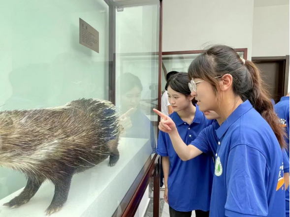 大周人民法庭干警对社会实践服务队全体成员的到来表示热烈欢迎,随后带领大家进入到滨江生态法庭,开启了一场别开生面“沉浸式”生态法制教育课堂。来到前厅,首先映入眼帘的是栩栩如生的中华斑羚、豹猫、熊掌、红豆杉等野生动植物标本,经介绍,陈列在馆的均为长江三峡库区“三区六县”环境资源案件中的涉案标本,生动鲜活地为大家讲述了每一起司法案件背后的生态法治故事。