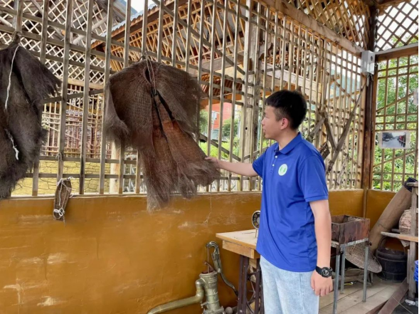 面对农旅体验园内的各式劳动工具,易老师展开了讲解,从诗句“孤舟蓑笠翁,独钓寒江雪”着手进行介绍蓑衣、斗笠、草鞋等农作物品的作用,描述风播机的工作原理,队员们通过了解纷纷对前人的智慧感到钦佩。来到五谷杂粮区,易老师向队员们一一介绍各类谷物并询问队员们簸箕中的“富”字的蕴意,队员们争先抢答,老师对队员们的答案表示赞同,并指出其深处的寓意及象征。