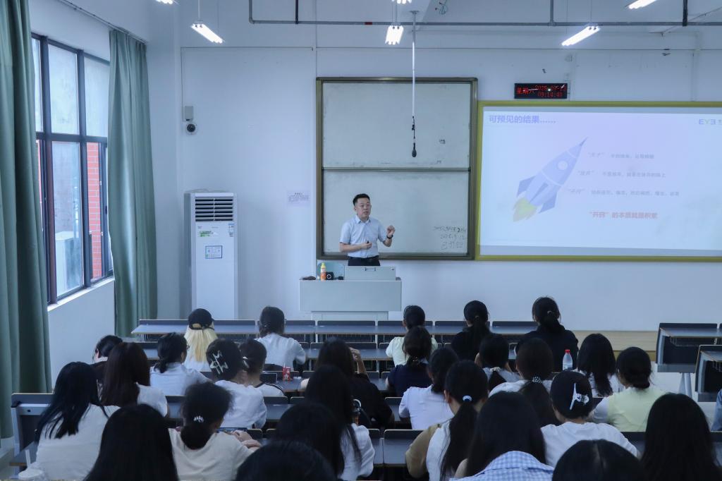 首先,黄正围绕 “专业学习与眼视光解读” 主讲,他强调学习需摒弃 “速成心态”,通过细化目标、深耕积累、打好基础;解读眼视光专业以 “眼” 为对象、“视” 为目的、“光” 为手段、“学” 为支撑的核心属性,指出行业属朝阳产业,需兼具技术与诊疗能力的人才,建议新生扎实学好英语与专业知识。随后,何小丽主任围绕 “眼视光的未来” 展开讲解,介绍眼视光学定义、范畴及行业重要性,阐述当前技术应用、市场需求,展望数字化 AI 与新型设备发展趋势,并分析职业机遇与所需技能。最后,眼视光技术教研室主任何颖介绍了学校概况、专业特色、人才培养目标、课程体系、大学生活及实习就业等内容,引导新生合理规划三年大学时光,明确学习方向,实现自我成长。