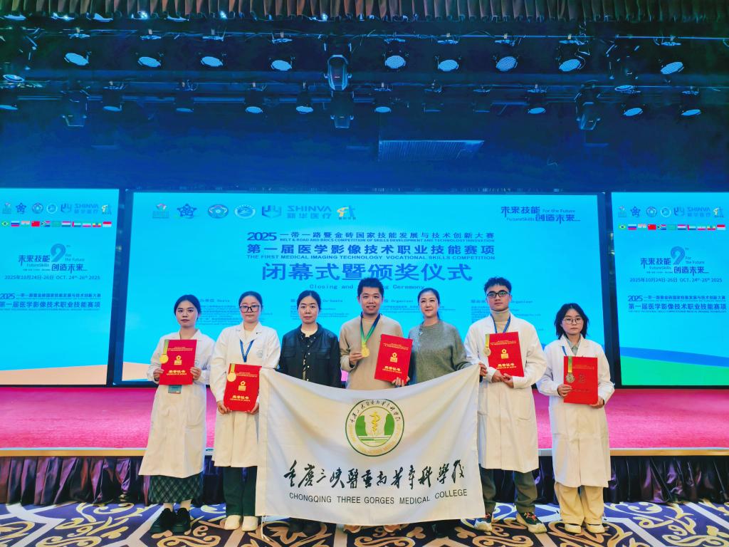 10月22日至27日,2025“一带一路”暨金砖国家技能发展与技术创新大赛第一届医学影像技术职业技能赛项于北京成功举办。我校王阳老师在教师组比赛中荣获一等奖;学生组比赛中,袁诗棪同学荣获一等奖,唐文艳、文宇杰两位同学分获二等奖,刘彦兰同学荣获三等奖。王阳、禹琦、李梦婕三位老师荣获“优秀指导教师奖”,学校荣获“最佳组织奖”。