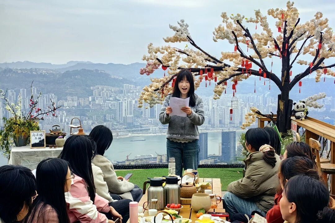 活动现场氛围温馨,茶摊内淡茶清香与书卷墨香相融。本次朗诵活动围绕爱国情怀、爱校奉献、巾帼风采等主题开展,参与教职工依次登台朗诵。