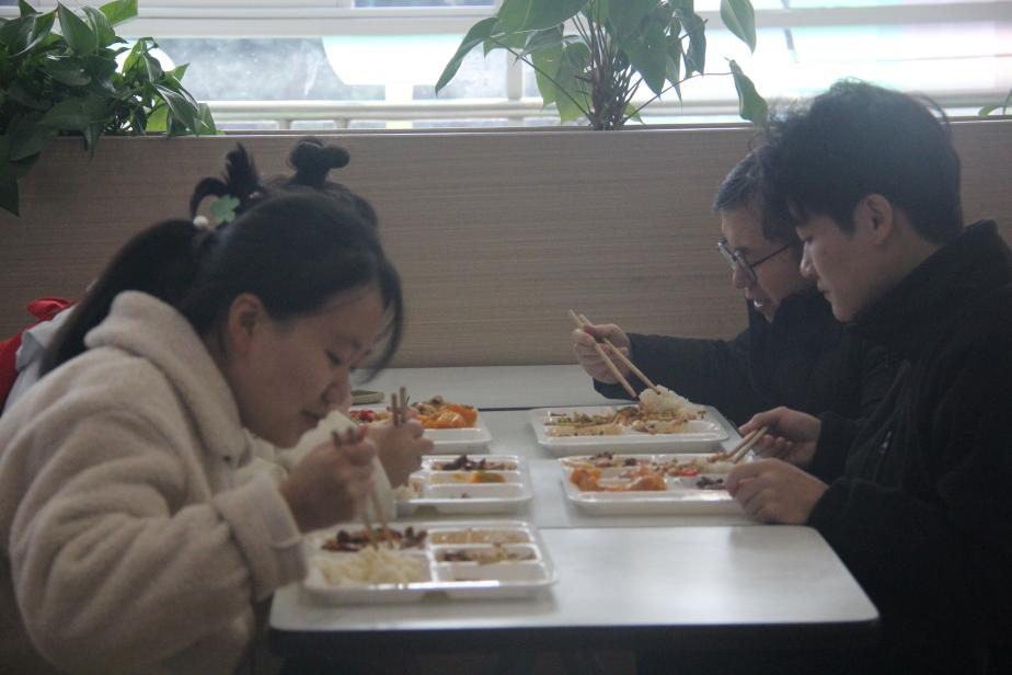 中午12点,沈力来到学生第二食堂与杨嘉月、李锐等几名学生共进午餐。沈力与同学们亲切地交流,详细了解同学们对食堂饭菜的价格、质量、种类和食堂服务质量等方面的意见和建议,关心同学们在校学习、生活以及期末备考情况。在询问了同学们的困难和疑惑后,沈力结合自身的经历为同学们进行职业指导,鼓励同学们提高自信心。最后,他勉励同学们努力学习专业知识,多参加技能比赛和社会实践活动,不负青春韶华。