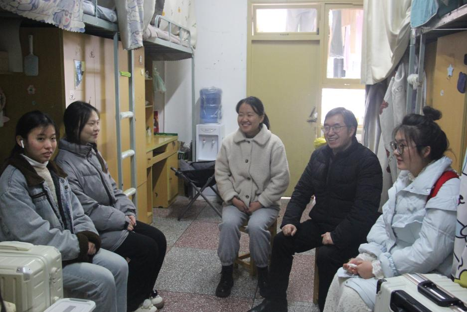 天气寒冷,温情暖心。沈力走访1栋学生公寓,慰问药学院在校学生。沈力亲切地询问同学们“学校生活是否习惯”“宿舍空调热不热”等问题,了解学生生活和学习情况。同学们热情地回答,表示天气虽冷,但宿舍非常温暖,学校的学习与生活环境都很舒适,老师们的关心与关爱更是让自己的心中暖意融融。沈力还叮嘱学生要加强身体锻炼,保持身心健康,以充沛的精力与饱满的活力投入到专业学习与技能实践中。同学们纷纷表示,自己会牢记沈校长的嘱托,认真学习,积极参加活动,不断提升自己。